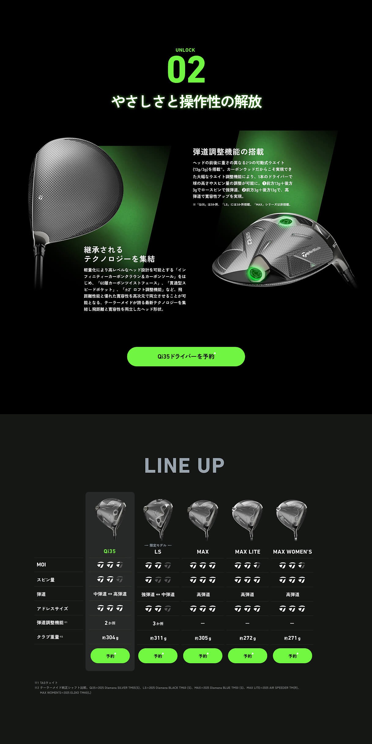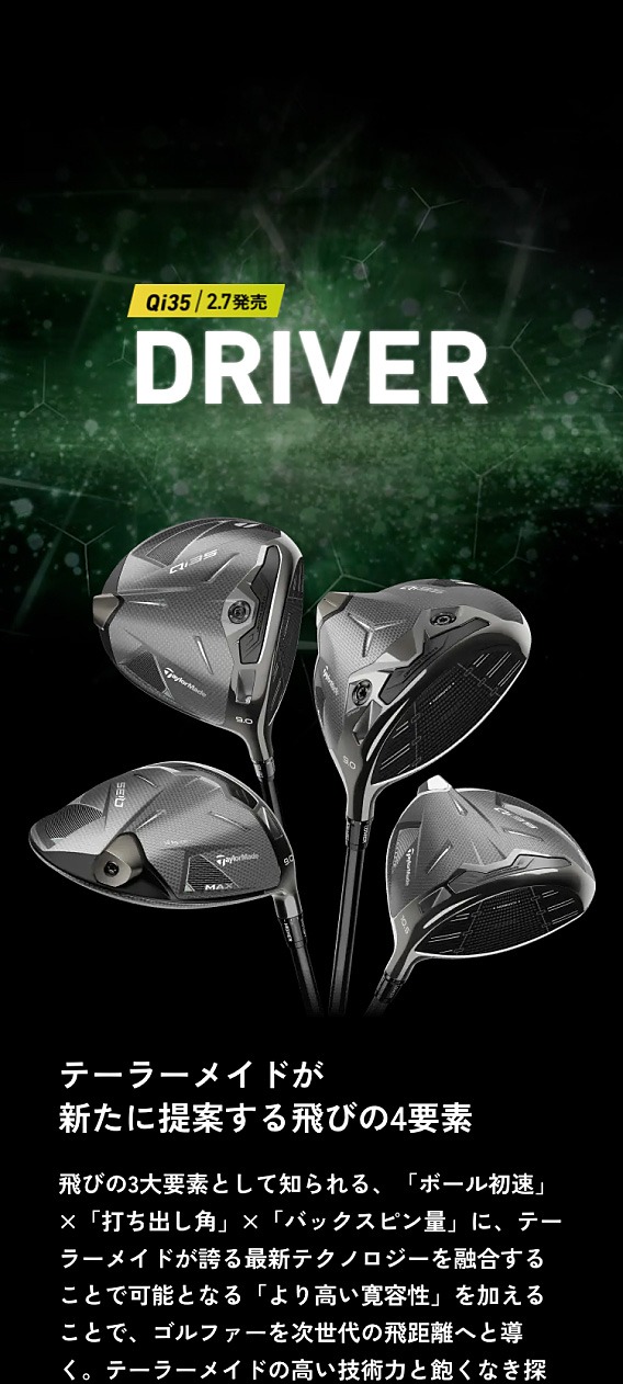 革新的な製品で世界中のトッププロを魅了する総合ゴルフカンパニー、テーラーメイド様の新製品「Qi35」の特設サイトを制作しました。「UNLOCK ANOTHER LEVEL 自分史上、最も信じられるドライバーへ」という製品テーマに沿い、革新性を感じさせる世界観や演出で表現しました。4種のクラブに対応した予約ボタンの切り替えや、視点を自然に導くボタン、テンポよくスクロールできる画面のリズムなど、細部まで配慮しました。
