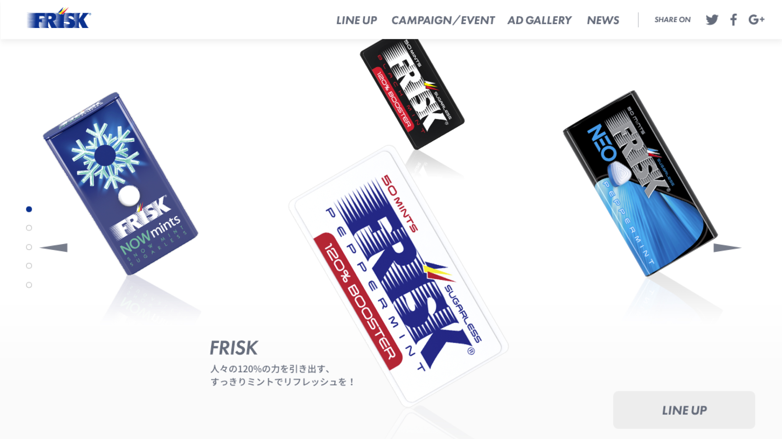 ミント風味のタブレット菓子「フリスク」のブランドサイト構築を担当しました。商品の魅力を最大限に引き出すための、商品撮影を行いました。