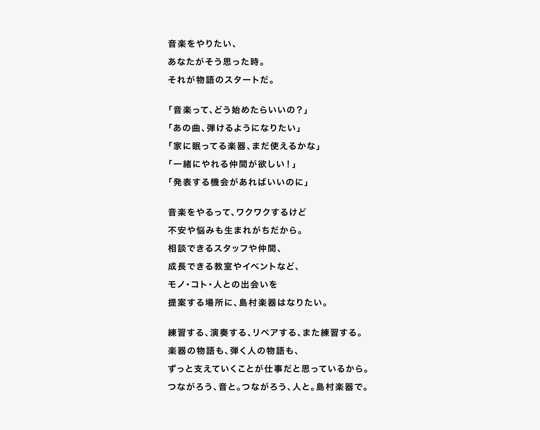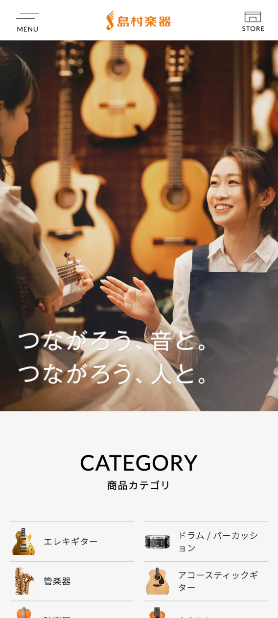 1962年創業の総合楽器店・島村楽器様のWebサイトリニューアルにおいて、UI/UXデザイン、コンセプトコピー、デザインシステムの設計をnudoが担当しました。Phase1では、トップページ、オンラインストアトップ、店舗情報、店舗ブログなどを刷新。多様なユーザーの来訪を想定し、目的別に最適な行動フローを設計しました。デザインシステムでは、コピーのボイスアンドトーン設計や画像・バナー制作ルールを体系化し、ブランドイメージの統一とブランディング強化、運用の効率化を支援しました。